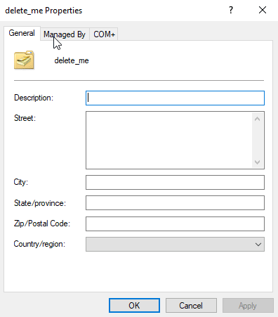 Now go back the OU and right click on it, choose properties. You will now have a couple more tabs on the top. If you open the Object
