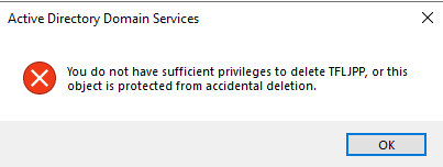 During the creation of the OU you saw this option that said ‘Protect this container from accidental deletion’