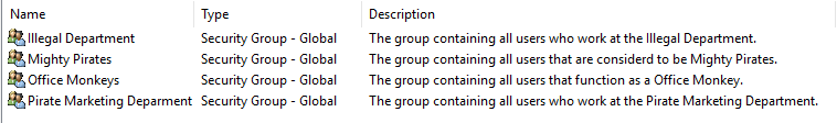 To setup something, like for example file permissions, you could just create a Global Group, add users to it, and give it rights directly somewhere. But trust me, this will eventually bite you in the ass. Using the structure I explained above will save you a ton of work. Wrong; Fixing issues other people created, awkward phone calls with clients why someone suddenly had more permissions then they needed and general waiting around.