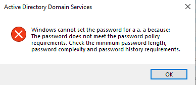 If you try to set a password that does not meet these requirements you will be prompted with this error message.