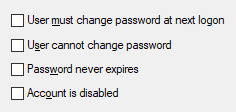 By default the option ‘User must change password at next logon’ is enabled. This will ensure that the user needs to change his password the next time he logs onto a PC.